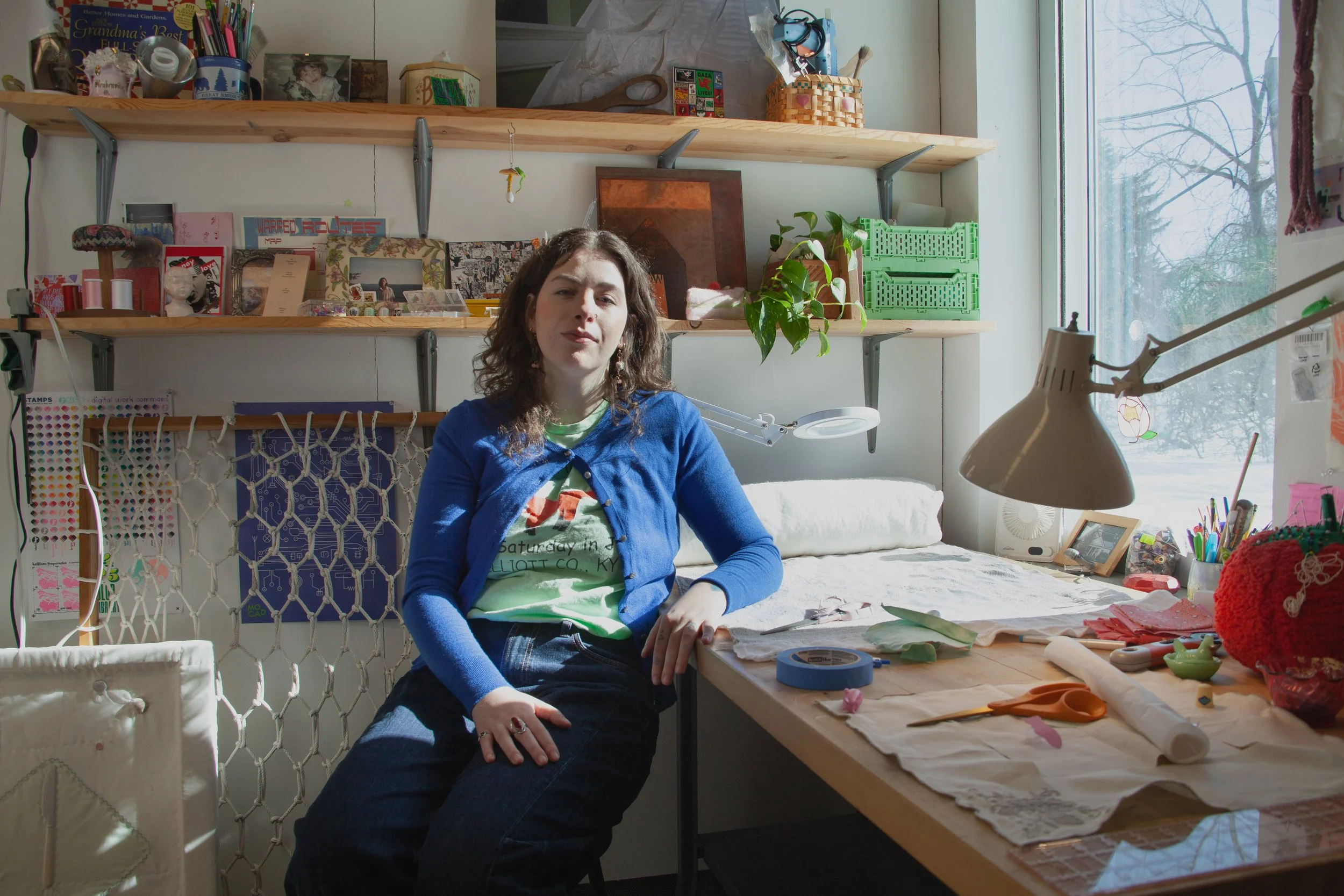 River Forest Berry is an artist, educator, and curator. She works with fiber processes, installation, and performance. Berry graduated from the Columbus College of Art & Design in 2021 with her BFA in the History of Art & Visual Culture and will receive her MFA from the University of Michigan in 2026. She recently curated Softer, an exhibition of four emerging, midwestern craft artists at 934 Gallery in Columbus, Ohio. Her own work has been exhibited nationally in spaces such as ROY G BIV Gallery, Albrecht-Kemper Museum, and West Virginia University, and is currently supported by the Greater Columbus Arts Council.